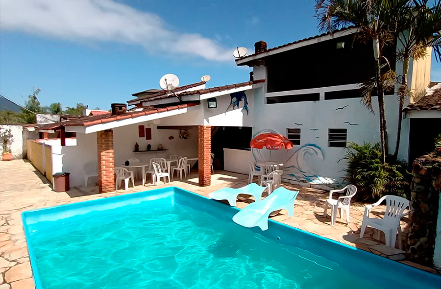 Diária de R$ 89 por pessoa. Para uso do chalé/piscina no período de 12h.